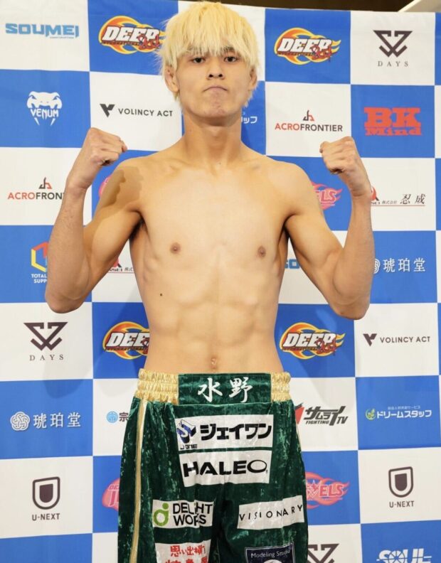 本試合は【DEEPフェザー級タイトルマッチ 5分3R】で行われ、水野選手は、青井人(BLOWS/王者)と対戦しました。